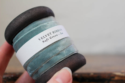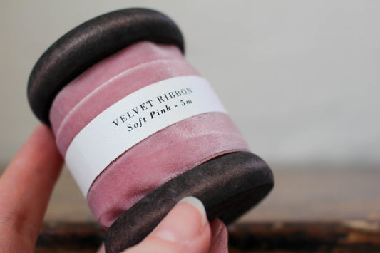 Velvet Ribbon on Wooden Spool - Soft Pink