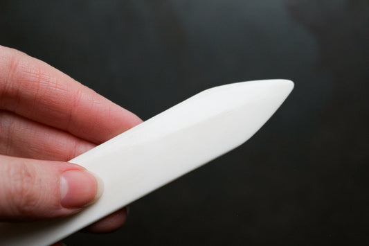 At Flywheel we stock a small range of items needed for bookbinding. Waxed linen thread in a range of colours and thicknesses from Sajou, France. Needles and other tools such as bone folders and wooden handle awls.