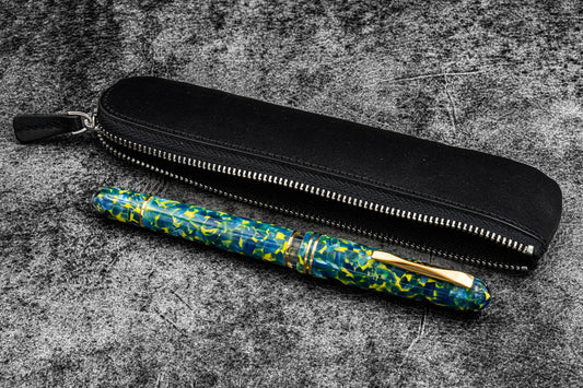 Galen Leather Zippered Single Pen Pouch - Black
