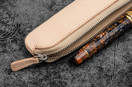 Galen Leather Zippered Single Pen Pouch - Undyed