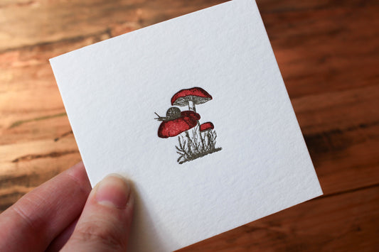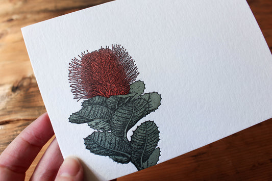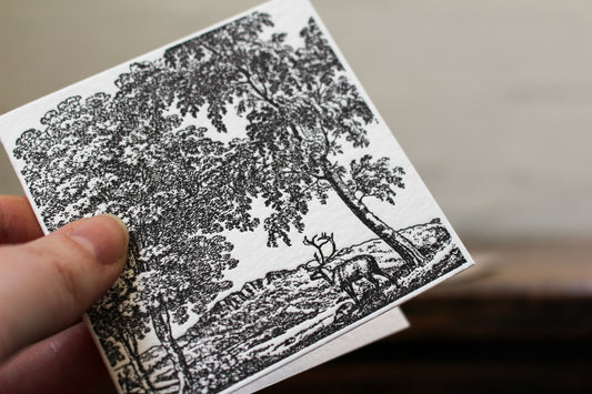 We are very proud to offer our range of letterpress printed goods. These greeting cards, notecards & gift tags are designed and printed out the back of our store on an antique 1924 Chandler & Price platen press. We take inspiration from antique etchings & engravings, giving new life to old illustrations by adding colours.