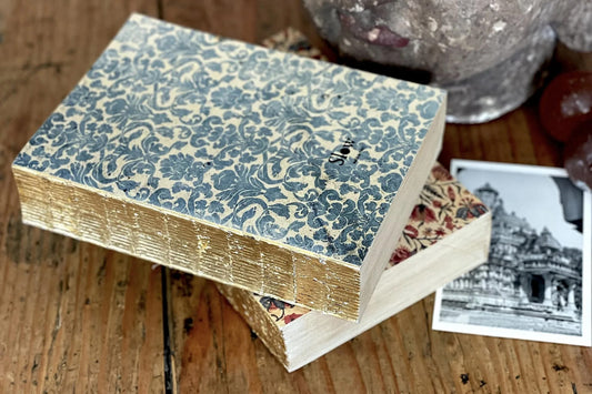 Slow Design Canvas Notebook XL - Blue Damask Gold Leaf