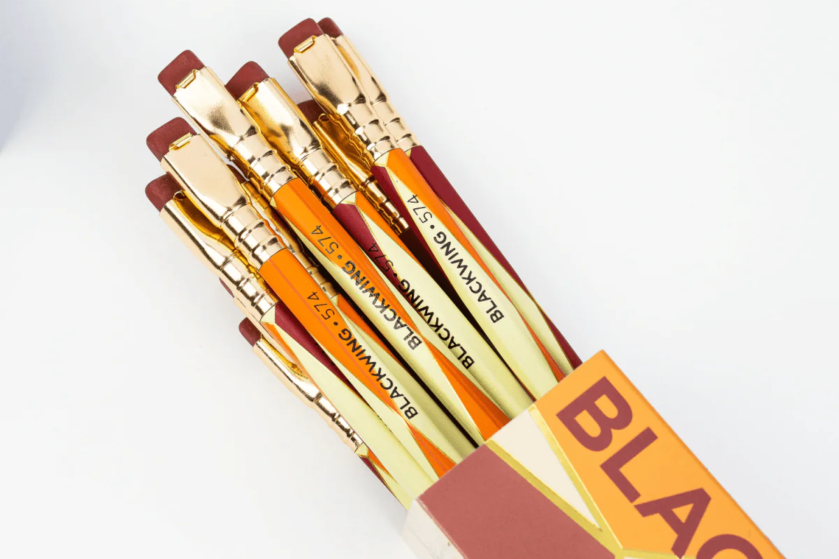 The Blackwing 574 is a tribute to Native American art and the 574 nations that use it to assert agency and identity. Blackwing worked with Kaw, Osage, Lakota artist Chris Pappan to design a pencil that evokes geometric patterns found throughout many Native American expressions of culture. Each pencil includes a firm graphite.
