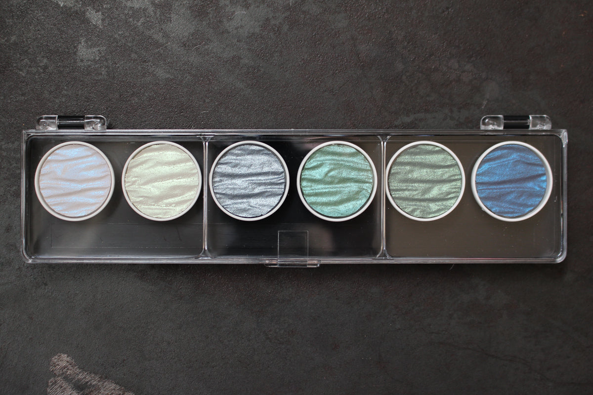 Finetec GmbH in Germany has been producing high quality Pearlcolors since 2005. Pearlcolors can be dissolved with water and applied with a brush. They are perfect for creating special effects and highlights, and are also ideally suited for calligraphy. For the perfect colour result it is recommended to put a few drops of water on the colour pan and allowing it to sit for a few minutes before use.