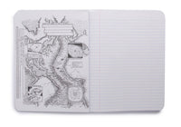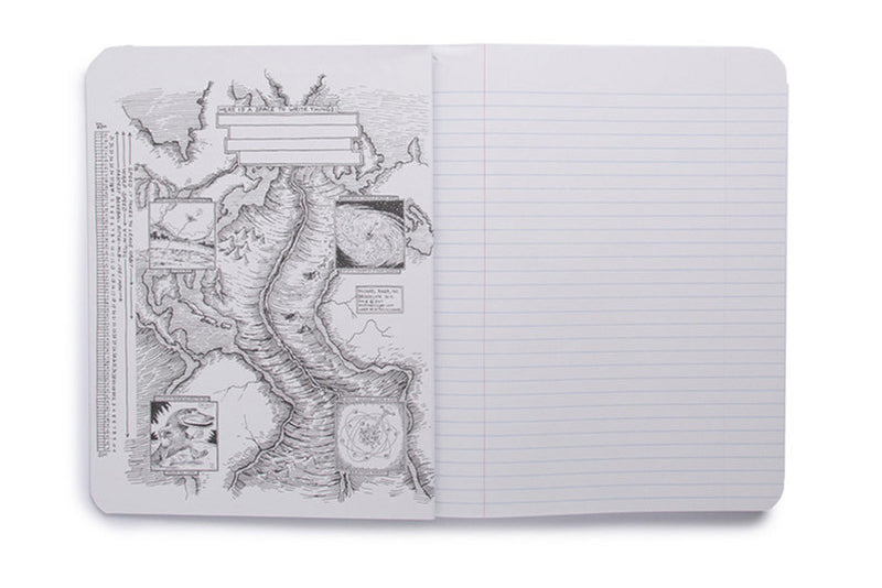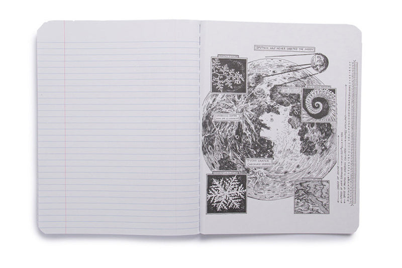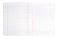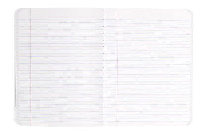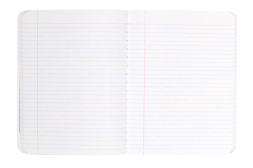 The large Decomposition Book features college-ruled paper - 7mm ruled lines printed in blue, with an adjacent margin in red. The hardcover notebooks have 160 ruled pages (80 sheets) of unbleached white paper made from 100% post-consumer waste. The paper is stitched and the notebook is tape bound, so it opens completely flat and is really tough. The covers are heavy card and, inside, feature all kinds of witty, useful information and sketches.
