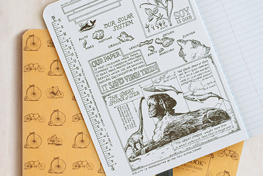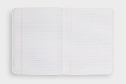 The large Decomposition Book features college-ruled paper - 7mm ruled lines printed in blue, with an adjacent margin in red. The hardcover notebooks have 160 ruled pages (80 sheets) of unbleached white paper made from 100% post-consumer waste. The paper is stitched and the notebook is tape bound, so it opens completely flat and is really tough. The covers are heavy card and, inside, feature all kinds of witty, useful information and sketches.