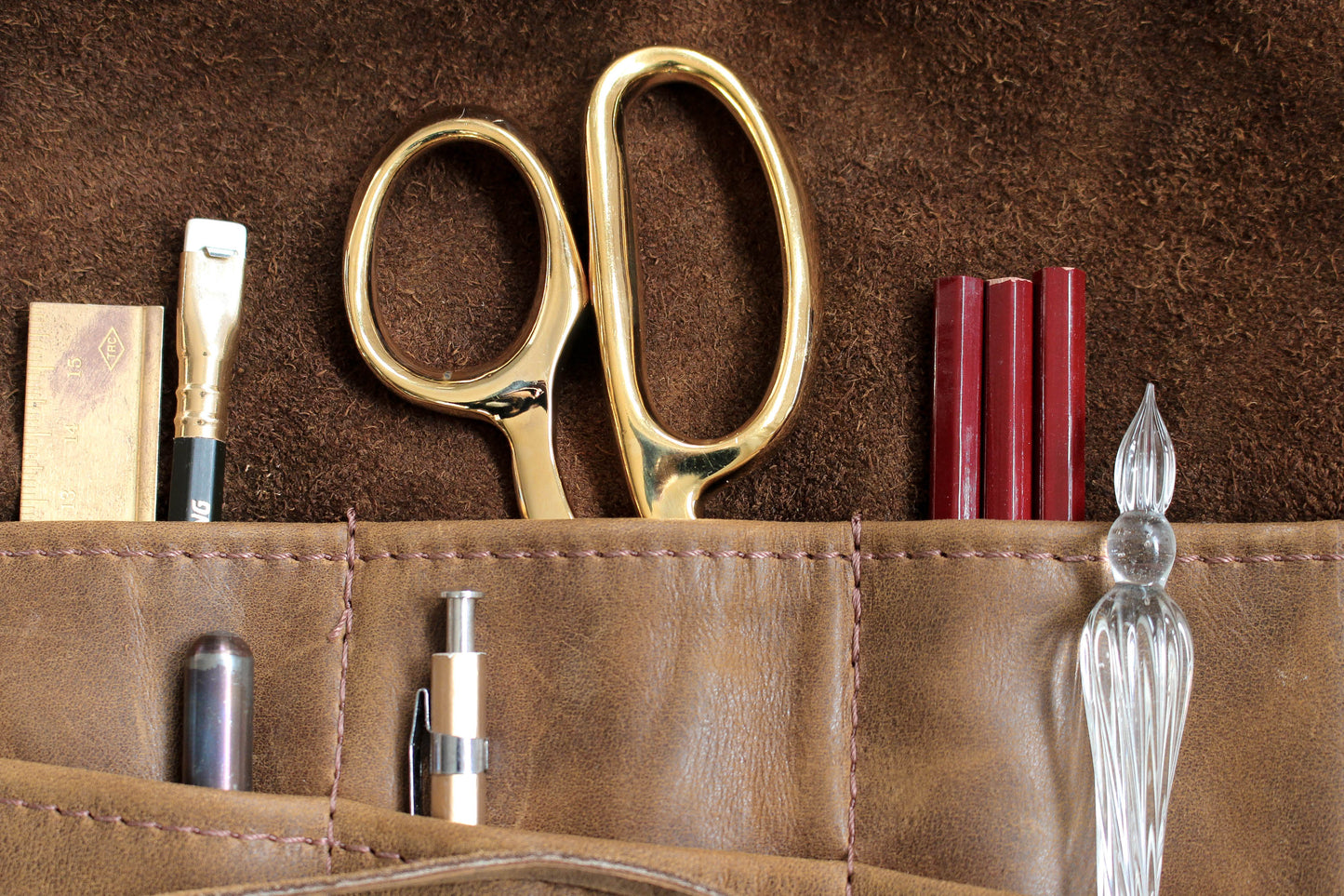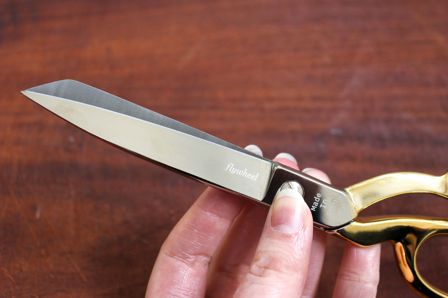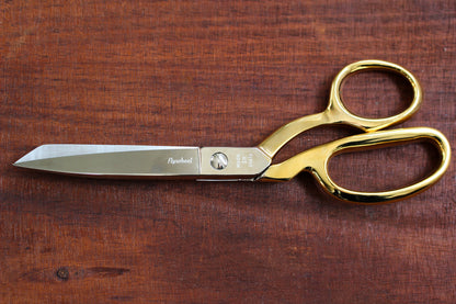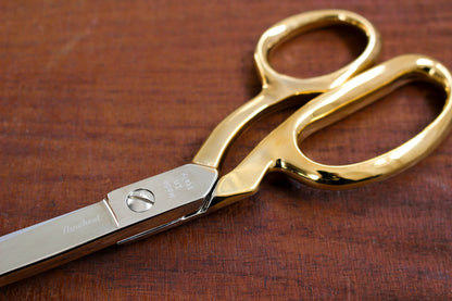 The handles are plated with a thin layer of 24k gold, creating a warm, lustrous finish. Please allow for subtle variation and character in the gold finish which adds to the charm and reflects the artisanal nature of the production. These shears feature offset handles, with one micro-serrated blade and one knife-edge blade, allowing for greater control over your fabric. These shears are lovely and heavy and made to last a lifetime. Keep these working perfectly by applying a small amount of oil near the pivot screw when needed and wiping after use to stop fabric particles building up between the blades. The pivot screw can also be adjusted to ensure that the tension of shears is just right.
