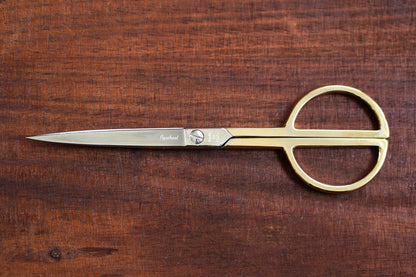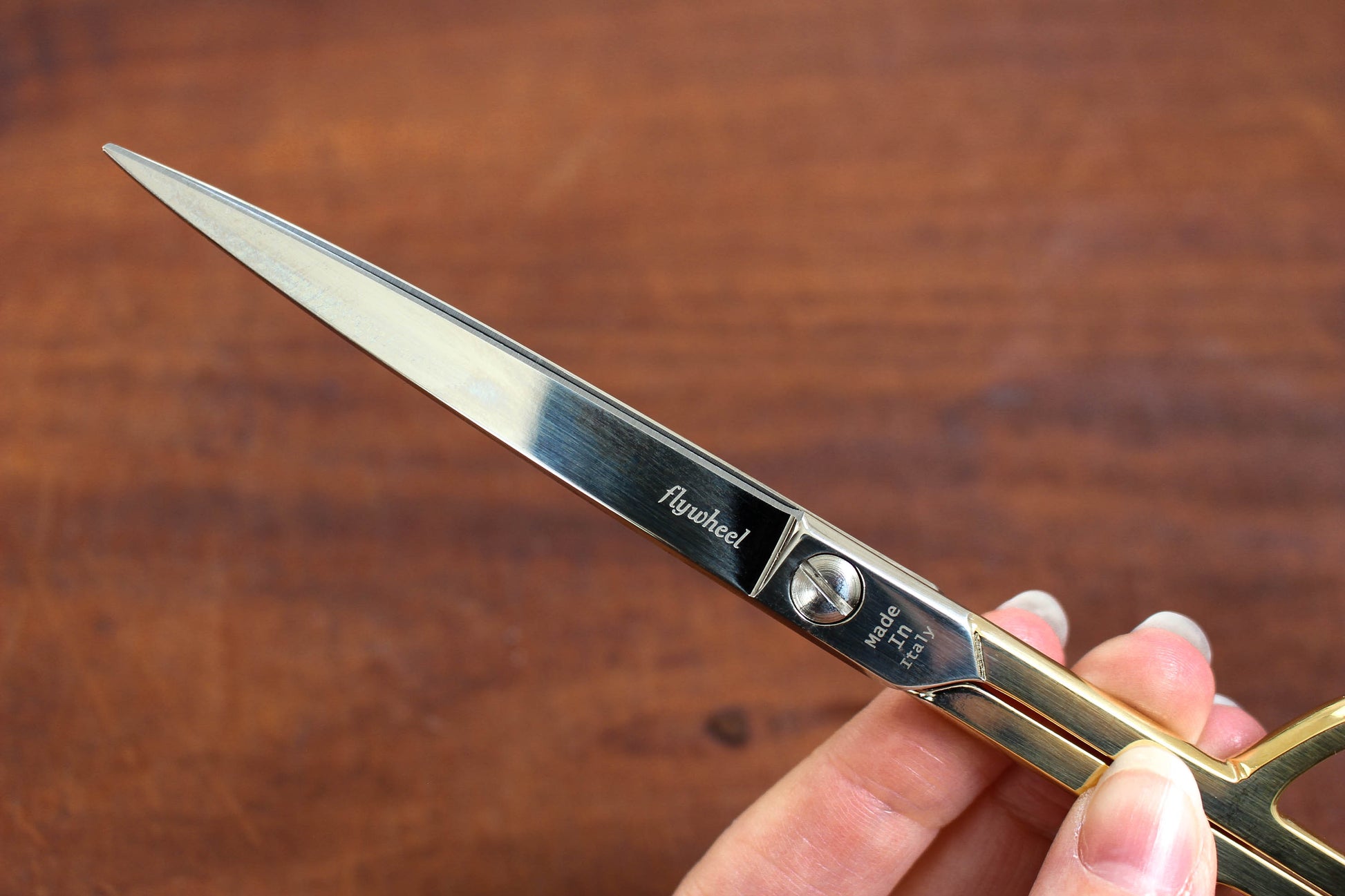 The handles are plated with a thin layer of 24k gold, creating a warm, lustrous finish. Please allow for subtle variation and character in the gold finish which adds to the charm and reflects the artisanal nature of the production. The blades are made from durable, nickel-plated carbon steel and expertly sharpened for long lasting performance and accuracy. Slim tips allow for precise, intricate cutting — perfect for paper projects, gift wrapping, and detailed crafting.