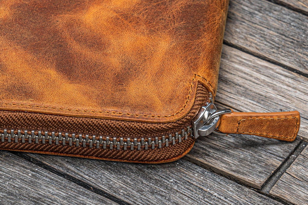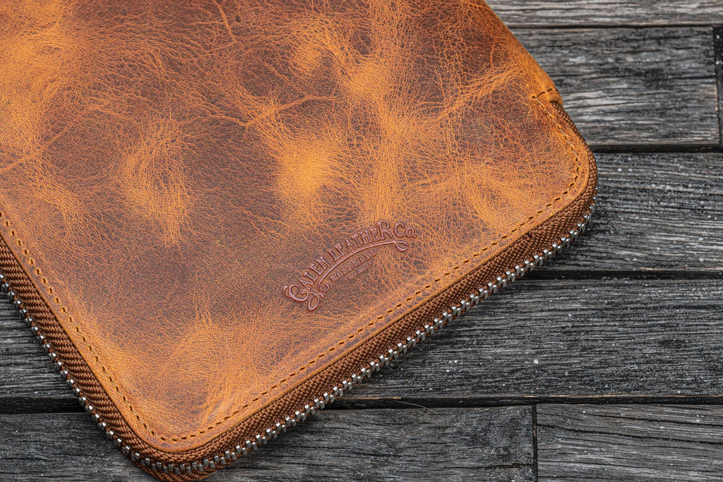 The handmade leather zippered folio from Galen Leather is the perfect way to store your everyday essentials for work, study or personal use.