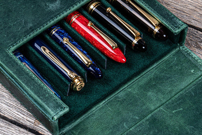 Galen Leather Magnum Opus 6 Slot Pen Case - Crazy Horse Forest Green