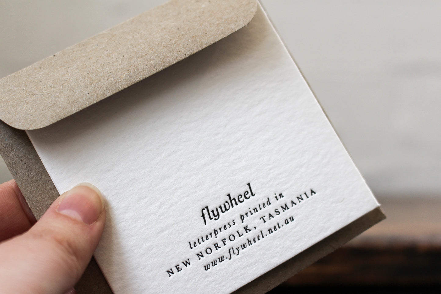 Designed and meticulously printed in our very own letterpress studio using our antique cast iron printing press.