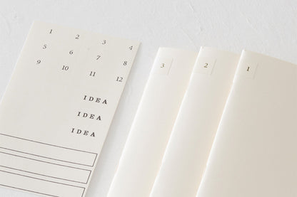 MD Notebook Light comes in a set of 3, each with 48 pages. Whether you use them one at a time or use each one for a different purpose, this compact package is designed to be flexible enough to suit your needs. This slim, light notebook allows you to write down ideas instantly. Keep it in your bag or your jacket or pants pocket so that it’s close at hand when inspiration strikes. You can even fold the pages all the way around and hold it in one hand, allowing you to write while standing.
