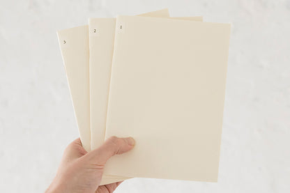 MD Notebook Light comes in a set of 3, each with 48 pages. Whether you use them one at a time or use each one for a different purpose, this compact package is designed to be flexible enough to suit your needs. This slim, light notebook allows you to write down ideas instantly. Keep it in your bag or your jacket or pants pocket so that it’s close at hand when inspiration strikes. You can even fold the pages all the way around and hold it in one hand, allowing you to write while standing.