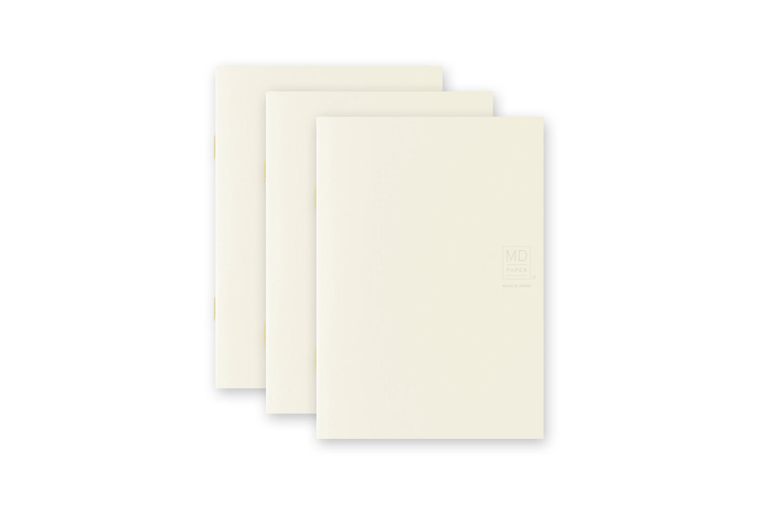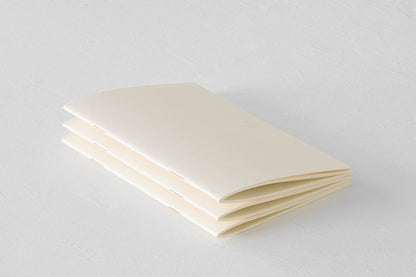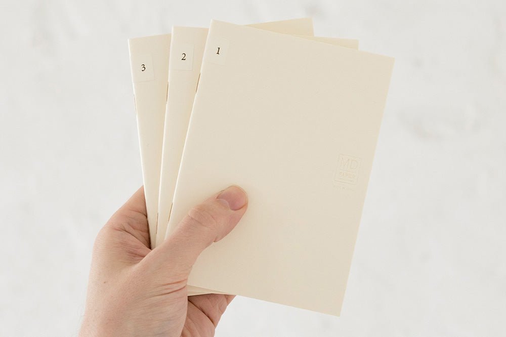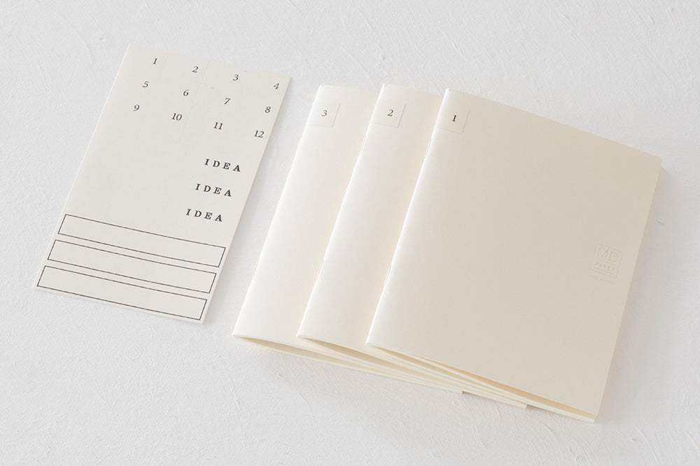 MD Notebook Light comes in a set of 3, each with 48 pages. Whether you use them one at a time or use each one for a different purpose, this compact package is designed to be flexible enough to suit your needs. This slim, light notebook allows you to write down ideas instantly. Keep it in your bag or your jacket or pants pocket so that it’s close at hand when inspiration strikes. You can even fold the pages all the way around and hold it in one hand, allowing you to write while standing.
