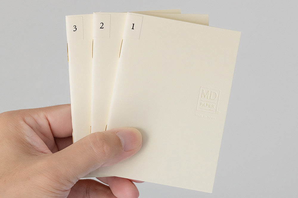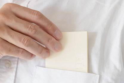 MD Notebook Light comes in a set of 3, each with 48 pages. Whether you use them one at a time or use each one for a different purpose, this compact package is designed to be flexible enough to suit your needs. This slim, light notebook allows you to write down ideas instantly. Keep it in your bag or your jacket or pants pocket so that it’s close at hand when inspiration strikes. You can even fold the pages all the way around and hold it in one hand, allowing you to write while standing.