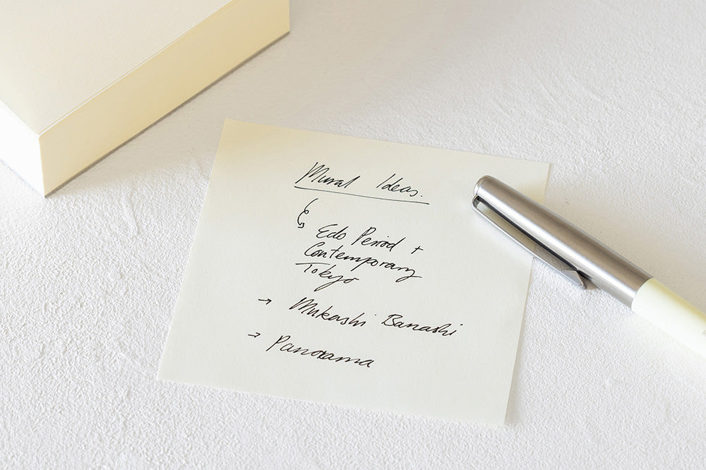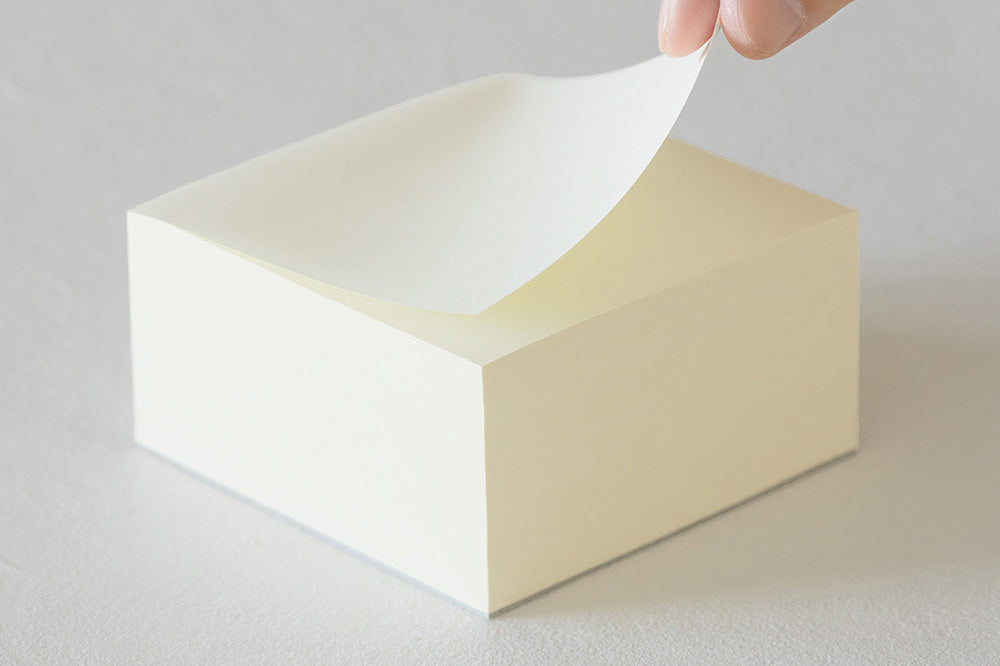 With the square shape and pristine look of a block of tofu, this memo block consisting only of MD PAPER has a clean look that will never look out of place. Grab a page, scribble down what you need and keep it safe in your MD Notebook if you need to - it'll look like part of the notebook!