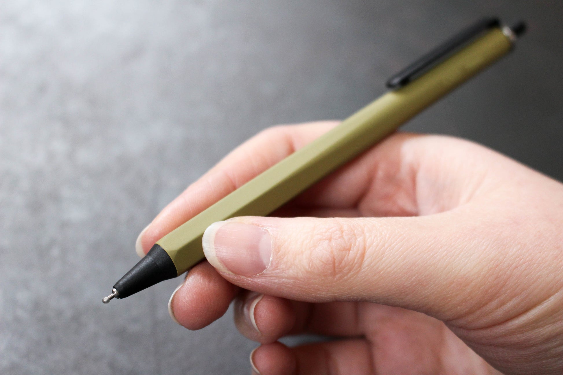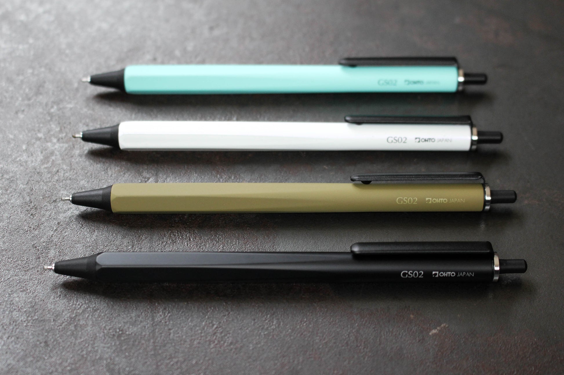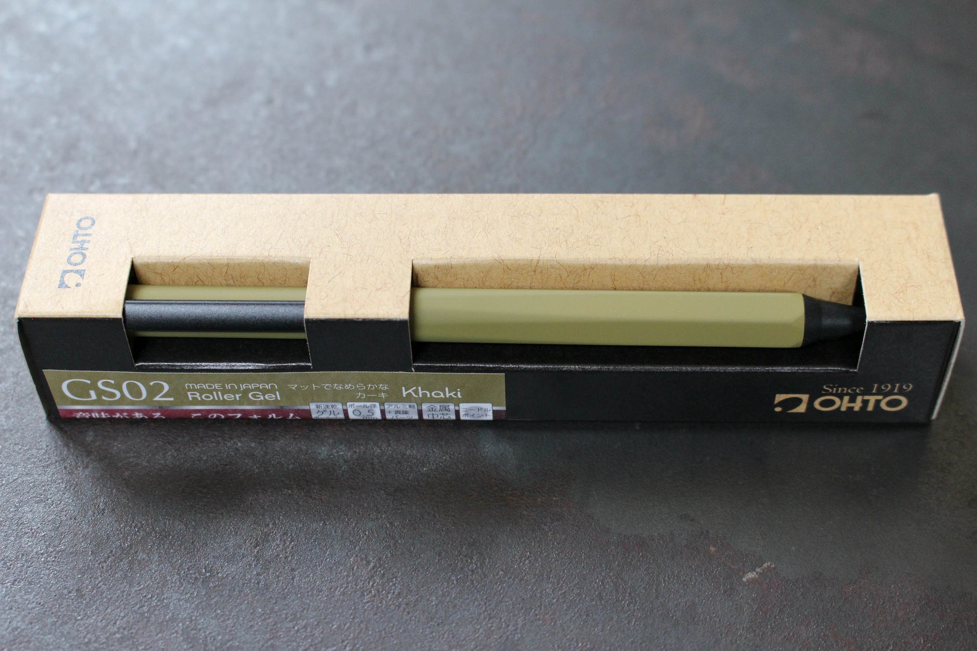 The OHTO GS02 Gel Ink Ballpoint Pen is sleek, durable, and highly functional. Crafted with a metal body, the hexagonal grip smoothly transitions into a rounded barrel for a comfortable and secure hold. With a 0.5mm needlepoint tip and uses a silicon carbide ceramic ball for precise, long-lasting writing. The ink is quick-drying gel ink that is fade and water proof. The pen's matte finish has a lovely soft feel and the retracting click mechanism is particularly satisfying.
