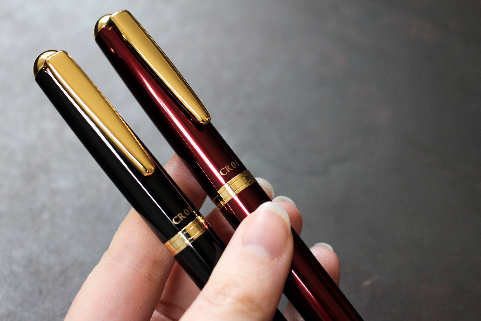 Each pen comes with black ink, and can be refilled with the OHTO Ceramic Roller Pen Refill in Black or Blue.