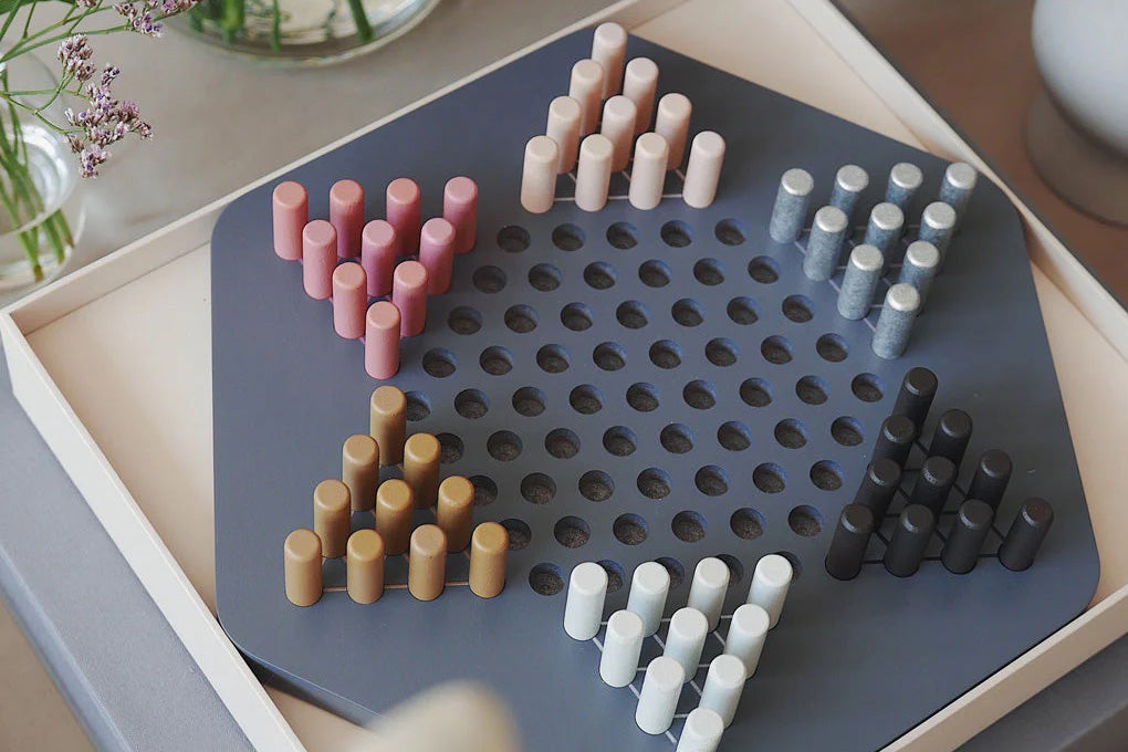 Your new favourite Chinese Checkers set reinvented to look equally good played or displayed. The Printwork's Chinese Checkers Classic set has a wooden board that measures 10.35 x 8.86 inches and has lacquered wooden pieces. It includes easy to read instructions in English, French and German.