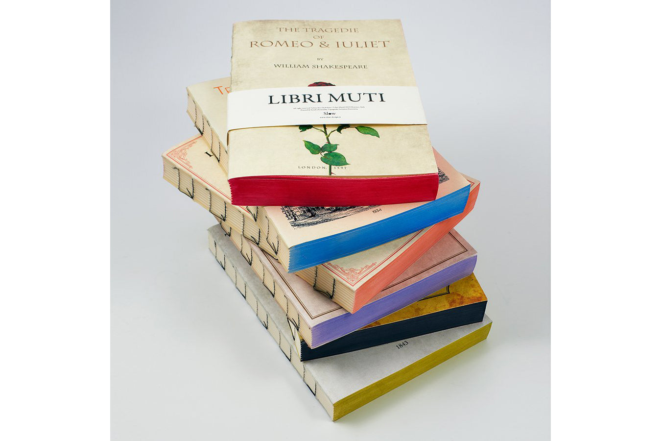 Libri Muti notebooks are designed and made by Slow Design in Florence, Italy. The collection mixes traditional printing and binding techniques together with a fresh spirit, added by the hand-coloured edges.