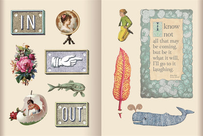 Here, quotes from classic pieces of literature are illuminated in sticker form. Adorn your collage or junk journal with a quote or sticker to add another dimension to your project.