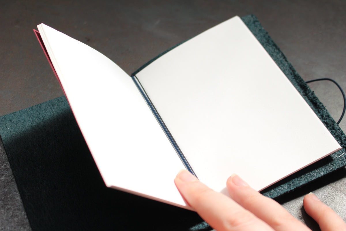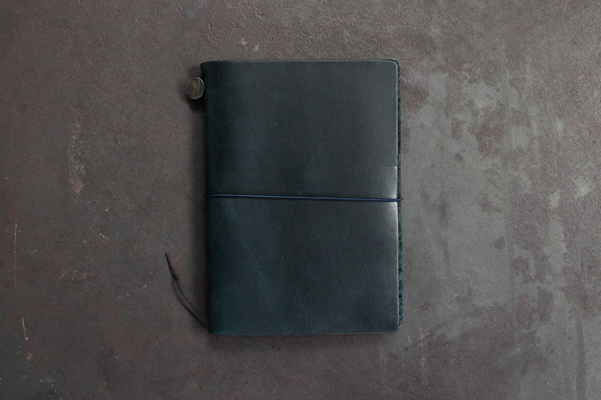 The Traveler's notebook features a hand-made roughly cut leather cover that ages wonderfully with use and time. It holds a 64 page super smooth MD paper notebook, which is fountain pen friendly. All enclosed by a rubber band and clasp made of tin. Slim, compact and durable, this is the notebook perfect for travelling or for everyday use.