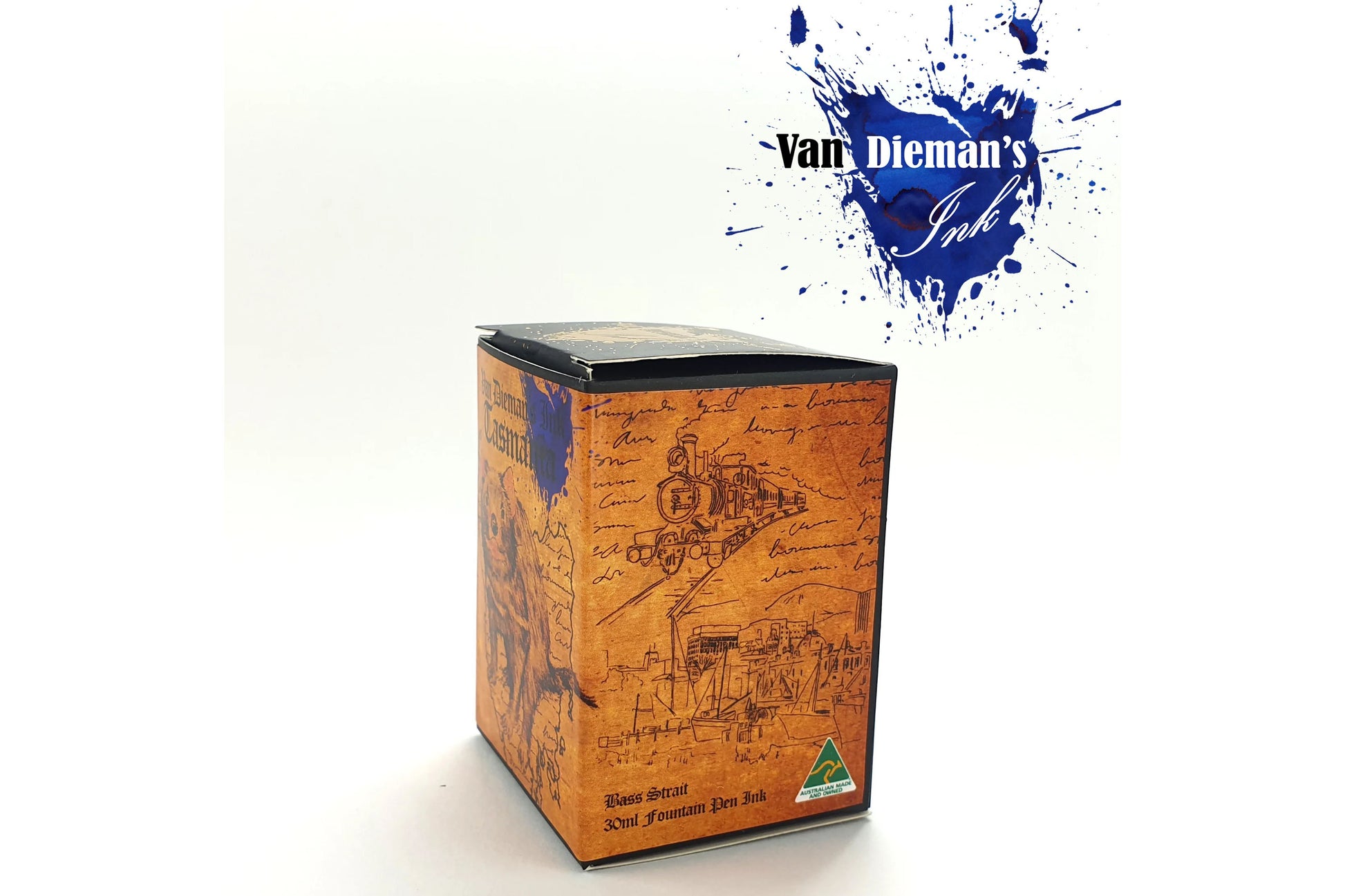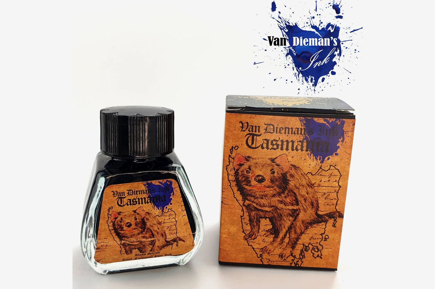 Van Dieman's Bass Strait Cobalt Blue is a deep and stormy ink, with much to say about the treacherous waves that separate the two islands of this southern land. The Bass Strait, with a dark and tumultuous reputation, gives its hue to this ink, which is somewhat darker and deeper than most blues, with even a hint of indigo-violet. Guaranteed not to clog or clot, you will be very happy with this salty little bottle of turbulence.