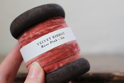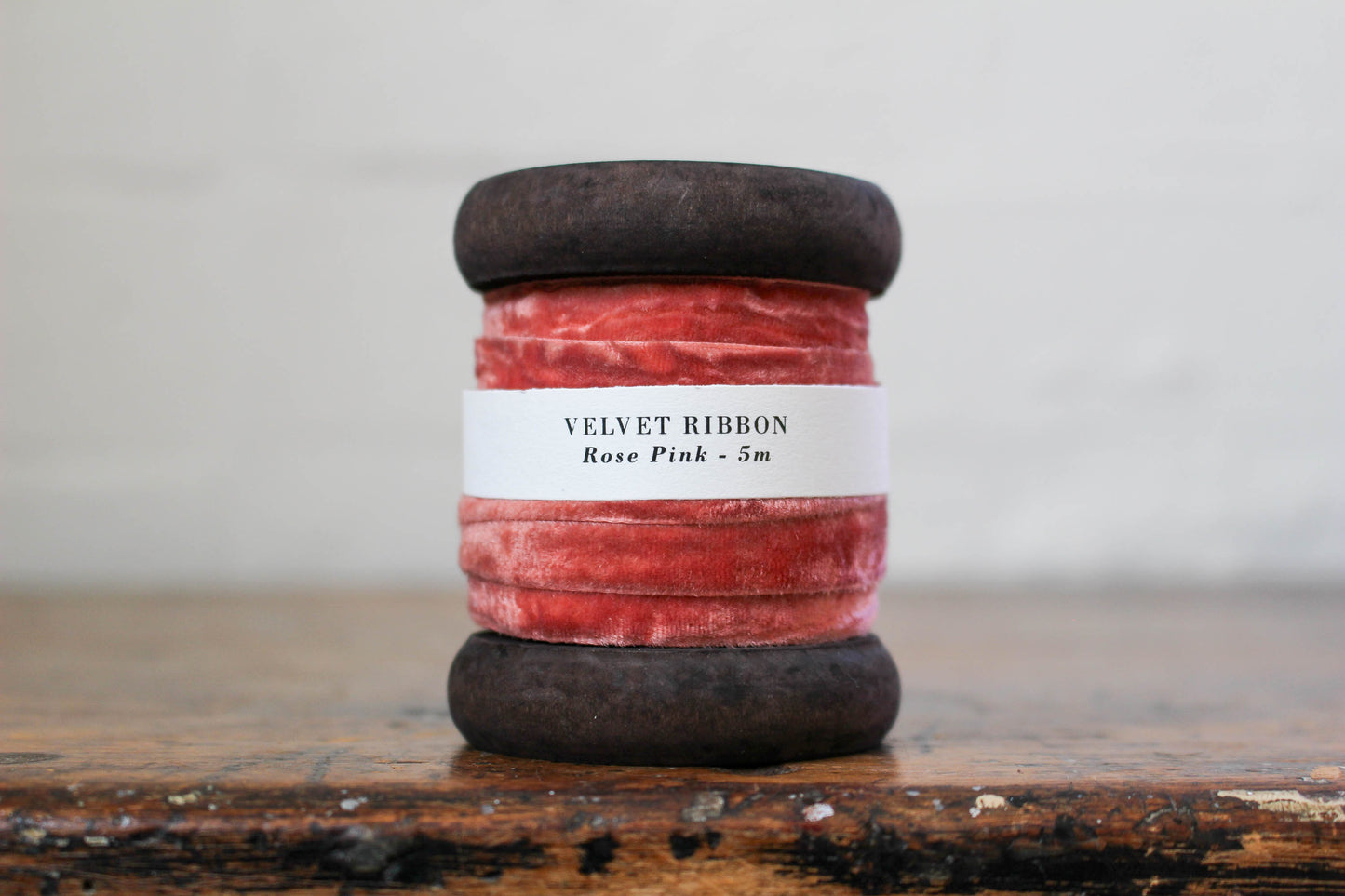 Velvet Ribbon on Wooden Spool - Rose Pink